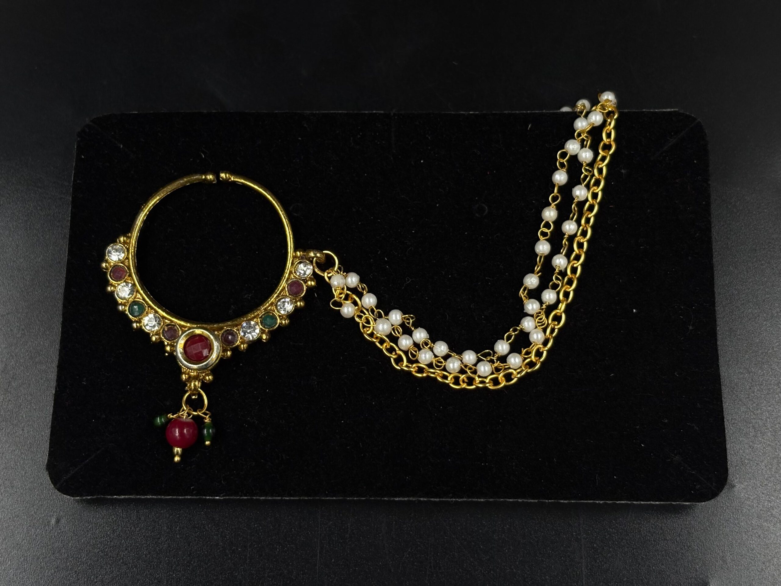 The Nathni reflects the charm of Indian tradition, often worn by brides to signify grace and prosperity. The intricate artistry, paired with a flawless finish, makes this piece not only a fashion statement but also a treasured keepsake. Whether paired with ethnic attire or bridal wear, this Nathni adds a royal touch to your look, making you shine with sophistication and cultural pride.